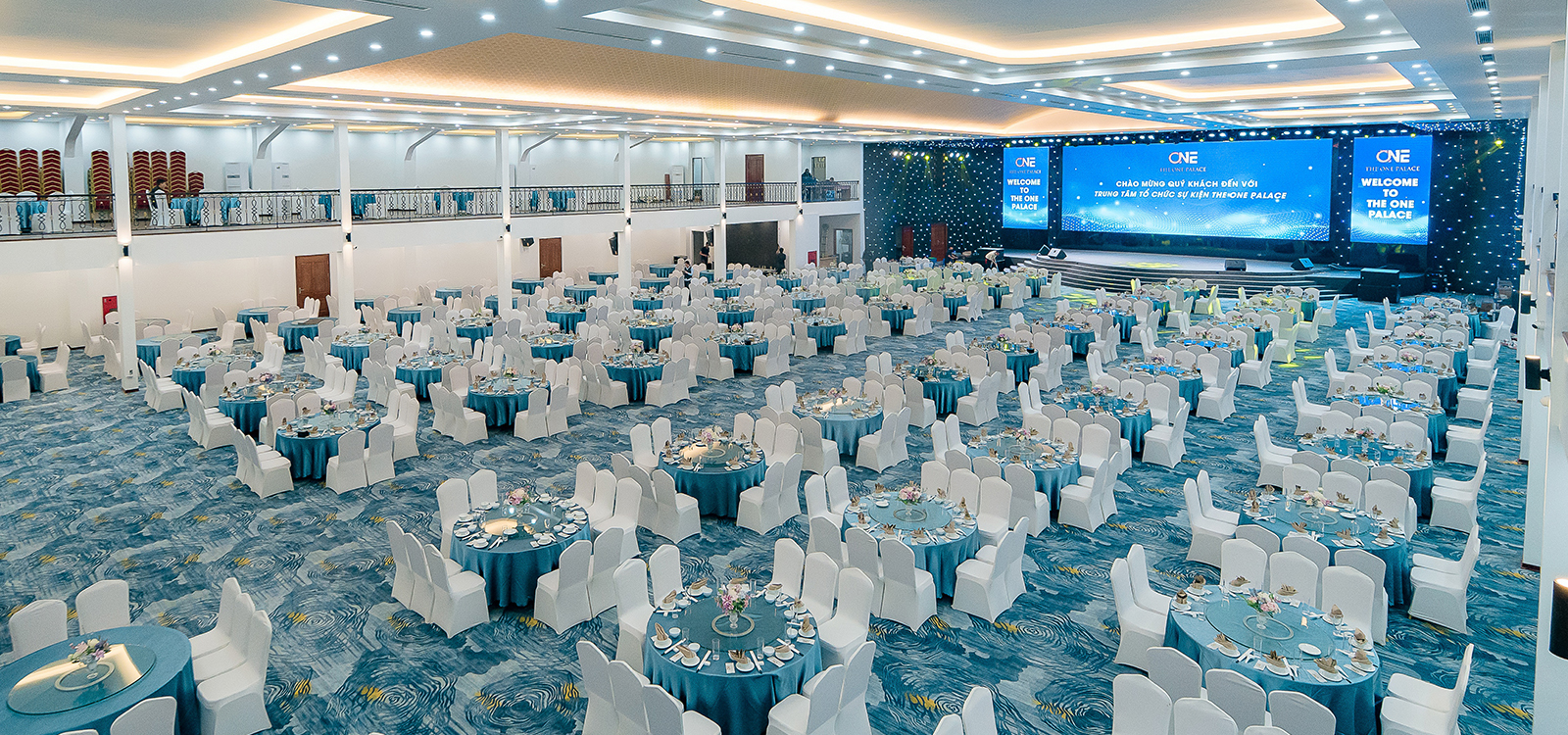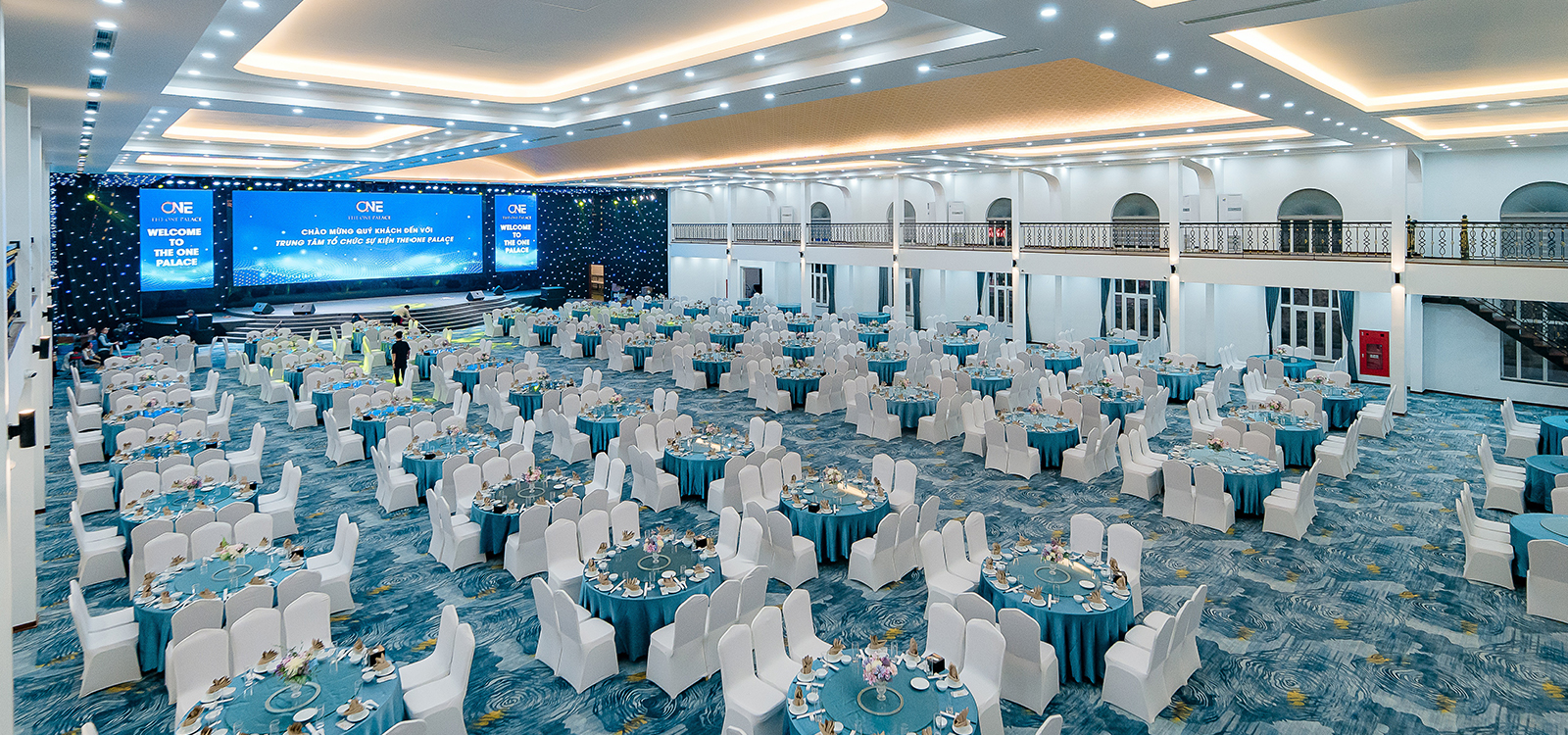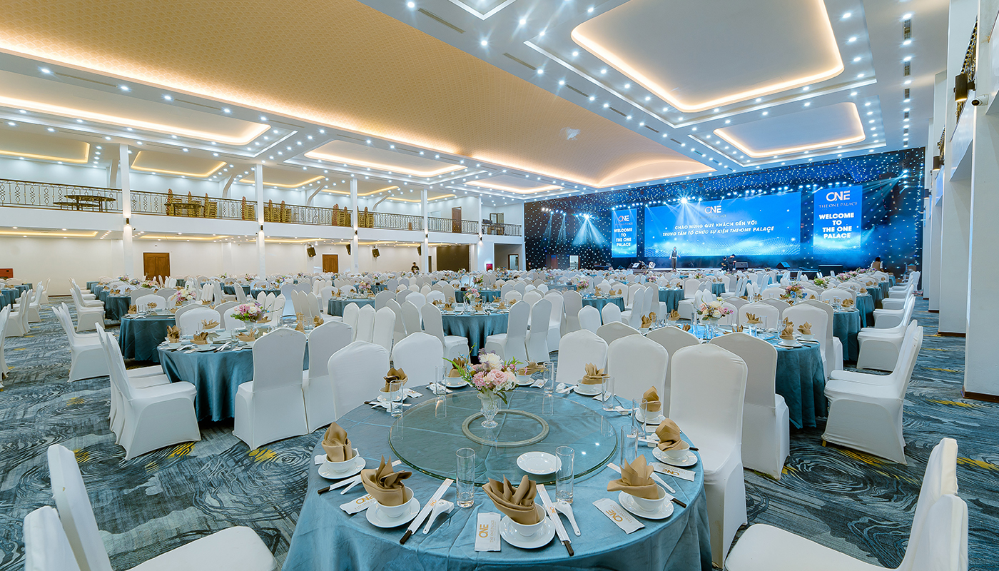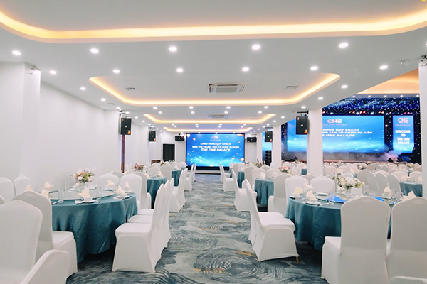 Không gian rộng rãi lên tới 2000m2 với thiết kế 2 sảnh: 1 sảnh lớn có sức chứa lên đến 1000 khách, 1 sảnh nhỏ sức chứa 120 khách. Được trang bị đầy đủ hệ thống âm thanh, ánh sáng, màn chiếu cùng thiết kế hiện đại, thời thượng. Nhà hàng The One Palace là địa điểm lý tưởng để quý thực khách đến thưởng thức những món ăn đặc sắc và tổ chức những bữa tiệc sang trọng, đẳng cấp.